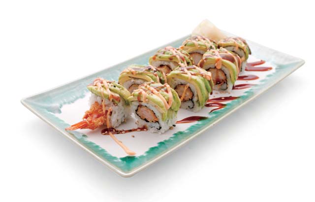 Tempura crevette, avocat, sésames, sauce épices, sauce eel